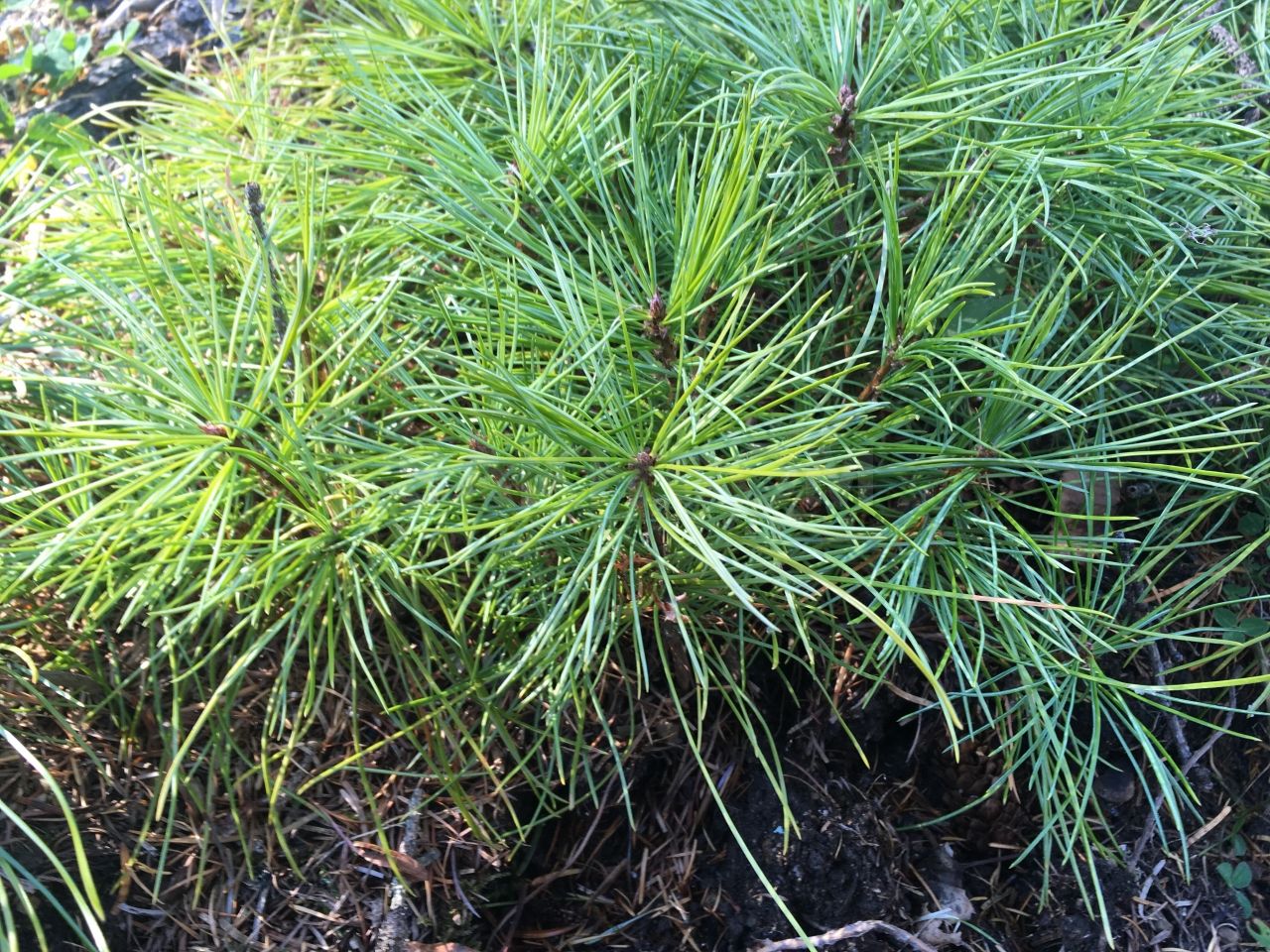 Корейский кедр, известный своей красивой пирамидальной формой и густой хвоей. Хвоя у дерева мягкая, темно-зеленая, собрана в пучки по пять штук. Шишки кедра съедобны, они крупные, до 10-15 см в длину, и содержат ценные кедровые орехи.
