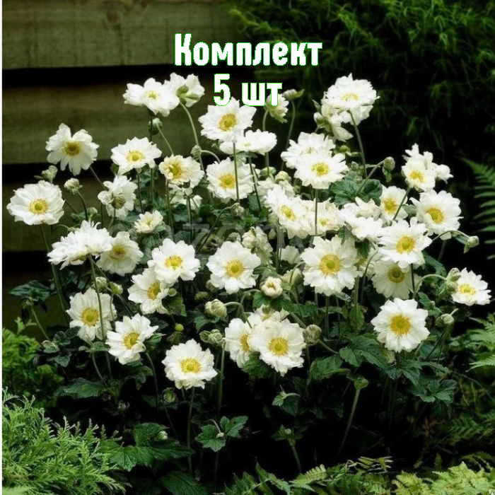 Луковицы анемоны гибридной Вейрлвинд (Whirlwind) — набор 5 шт. Премиальные луковицы для эффектного поздне-летнего цветения. Компактные кусты до 80 см с ветвистыми побегами и серовато-зелёной ажурной листвой. С августа по сентябрь — обилие полумахровых белых цветов до 8 см в диаметре. Отлично подходят для цветников, миксбордеров, у входа и вдоль дорожек, как одиночно, так и в композициях с другими многолетниками.