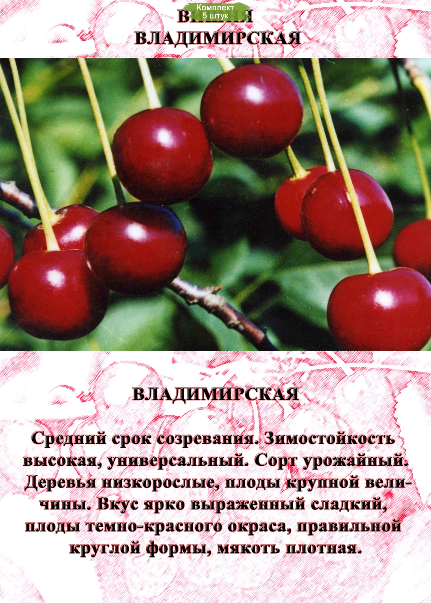 Добавьте в свой сад саженцы вишни Владимирская Поздняя и наслаждайтесь вкусными и полезными ягодами каждый год!
